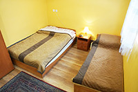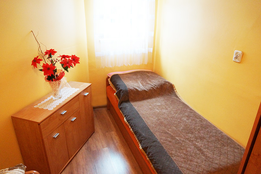 | Pokoje gościnne w standardzie turystycznym z łazienkami, łącznie 6 miejsc noclegowych. Pokoje wyposażone są w TV, wygodne meble, lampki nocne. Do dyspozycji naszych gości oddajemy w pełni wyposażony aneks kuchenny (kuchenka mikrofalowa, kuchenka gazowa, lodówka). |