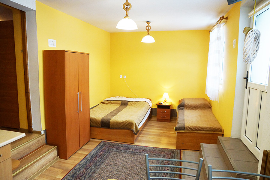 | Pokoje gościnne w standardzie turystycznym z łazienkami, łącznie 6 miejsc noclegowych. Pokoje wyposażone są w TV, wygodne meble, lampki nocne. Do dyspozycji naszych gości oddajemy w pełni wyposażony aneks kuchenny (kuchenka mikrofalowa, kuchenka gazowa, lodówka). |